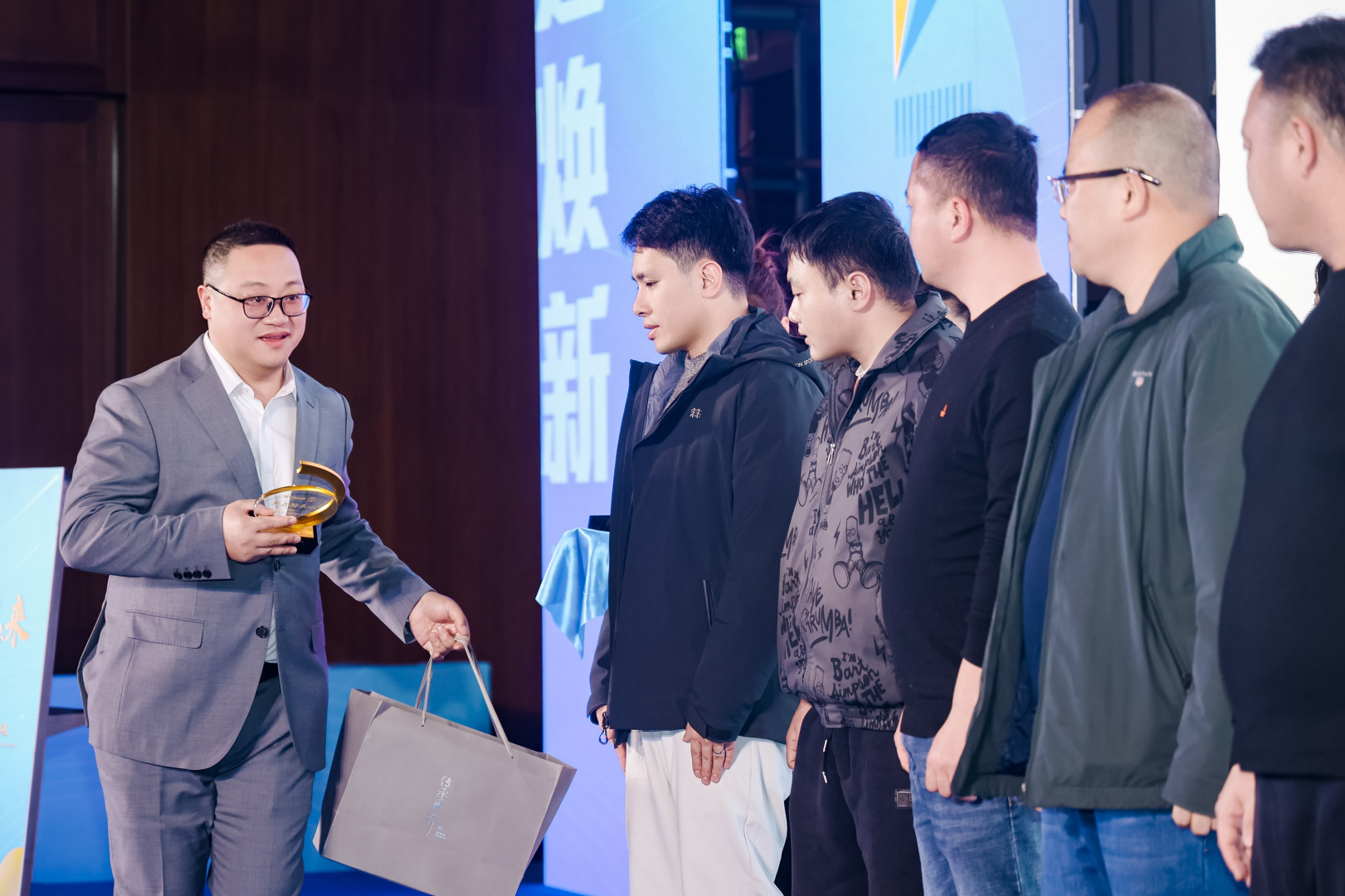 Стратегическое сотрудничество и превосходное обслуживание: г-жа Мао Цайцзюань, директор по продажам компании Nantes Cranes, вышла на сцену, чтобы вручить сувениры и памятные кубки поставщикам услуг, которые сотрудничают с компанией более десяти лет, в знак благодарности за их выдающийся вклад в техническое обслуживание и сотрудничество на рынке.